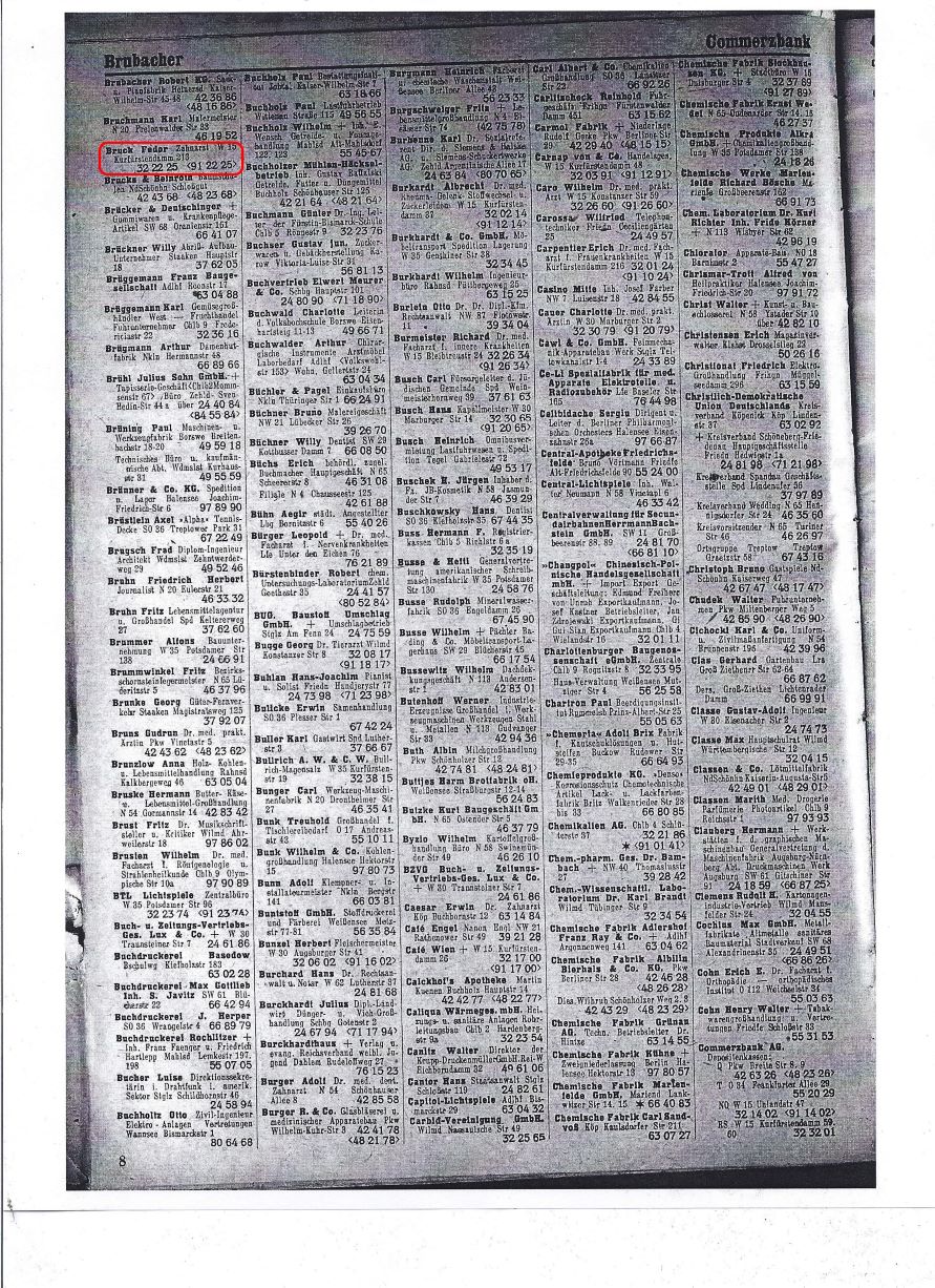 Käthe Heusermann suggested that my uncle apply to the Russians to take over Dr. Blaschke’s intact dental office, which he was eligible to do as a surviving dentist; Dr. Blaschke’s office was in the Russian occupation zone and my uncle was granted permission to take possession of his premises located at Kurfürstendamm 213 (Figure 3), as postwar Berlin address directories confirm. (Figure 4)