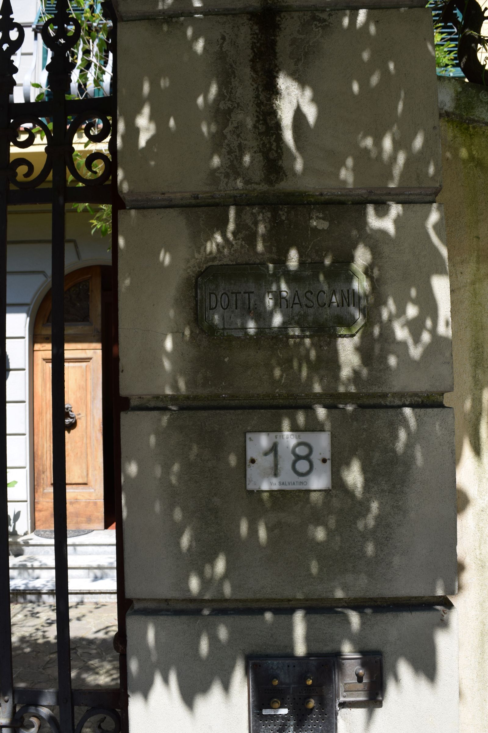 Figure 11. Name plate on Dr. Gino Frascani’s house at Via del Salviatino 18 in Fiesole, where his daughter-in-law, Ms. Maria Agatha Frascani, now lives