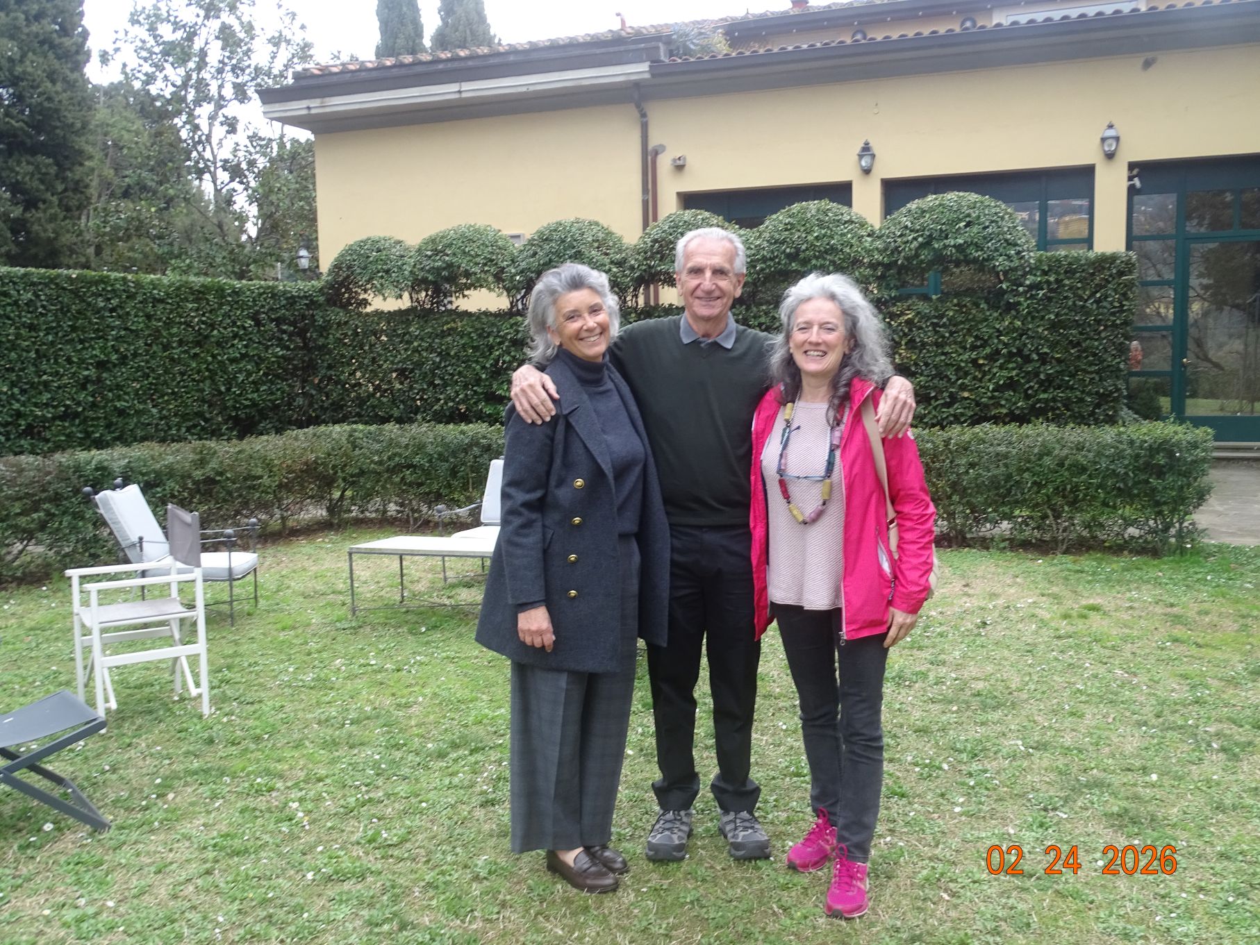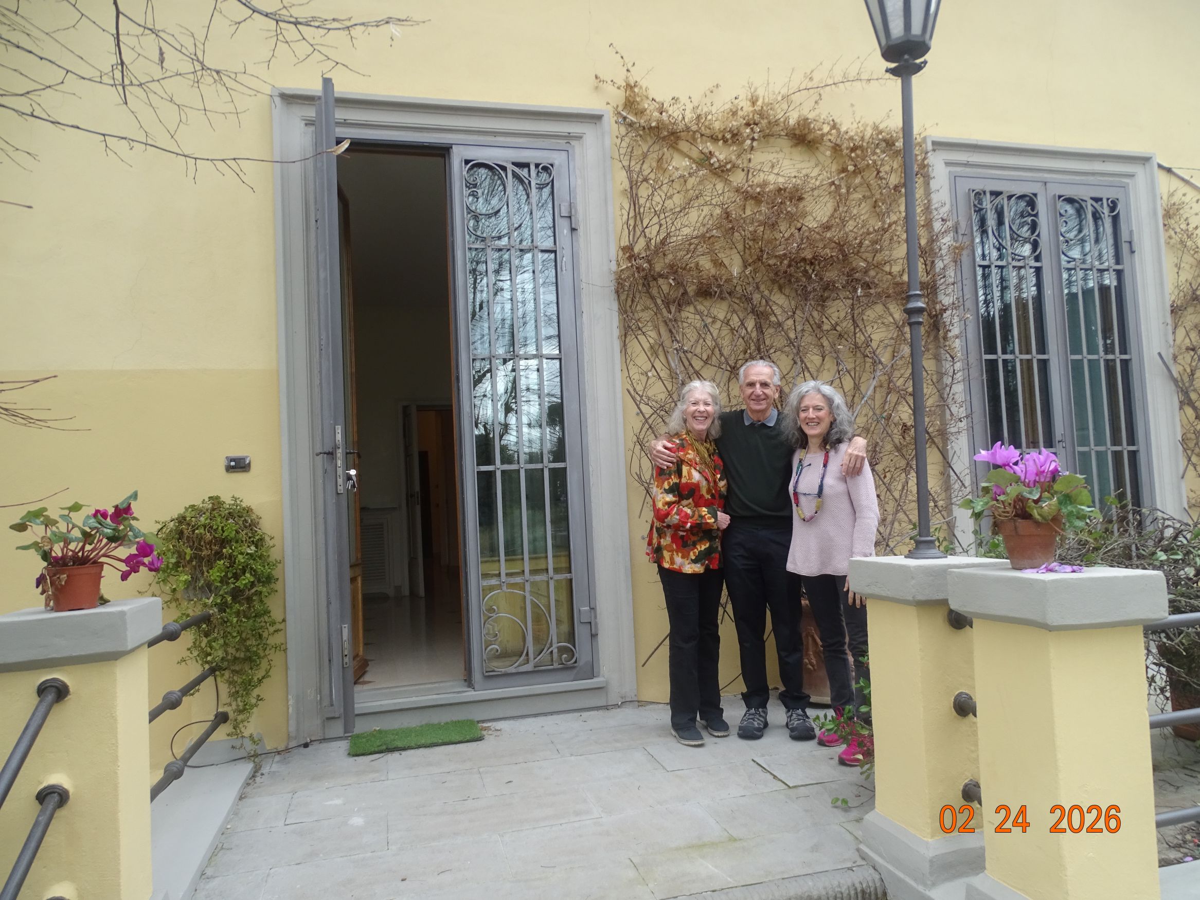 Figure 24. Me standing between my wife Ann and Giuditta in front of the Villa Primavera in February 2026