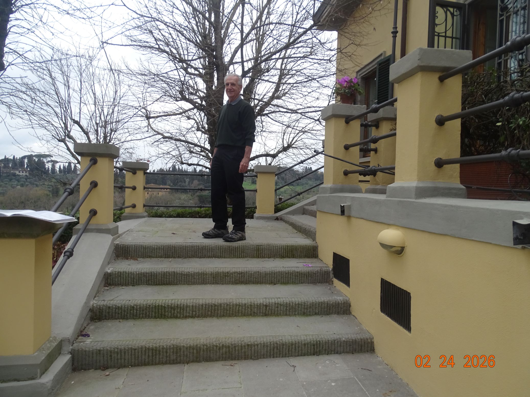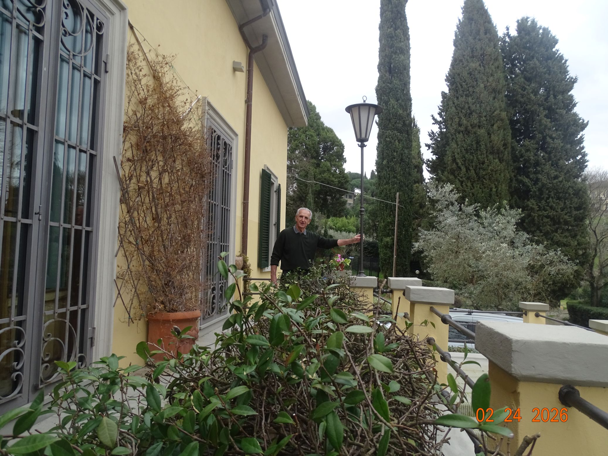 Figure 23b. Me on February 24, 2026, in front of the Villa Primavera with my hand on the vertical pole seen in Figure 23a