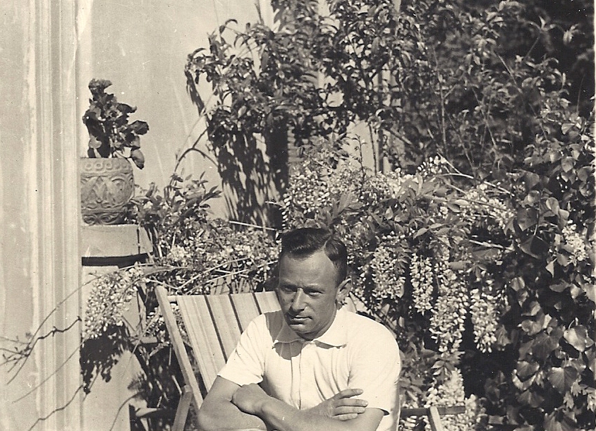 Figure 22a. My father seated in front of the Villa Primavera in May 1938; note the planter on the house wall on the left side of the picture