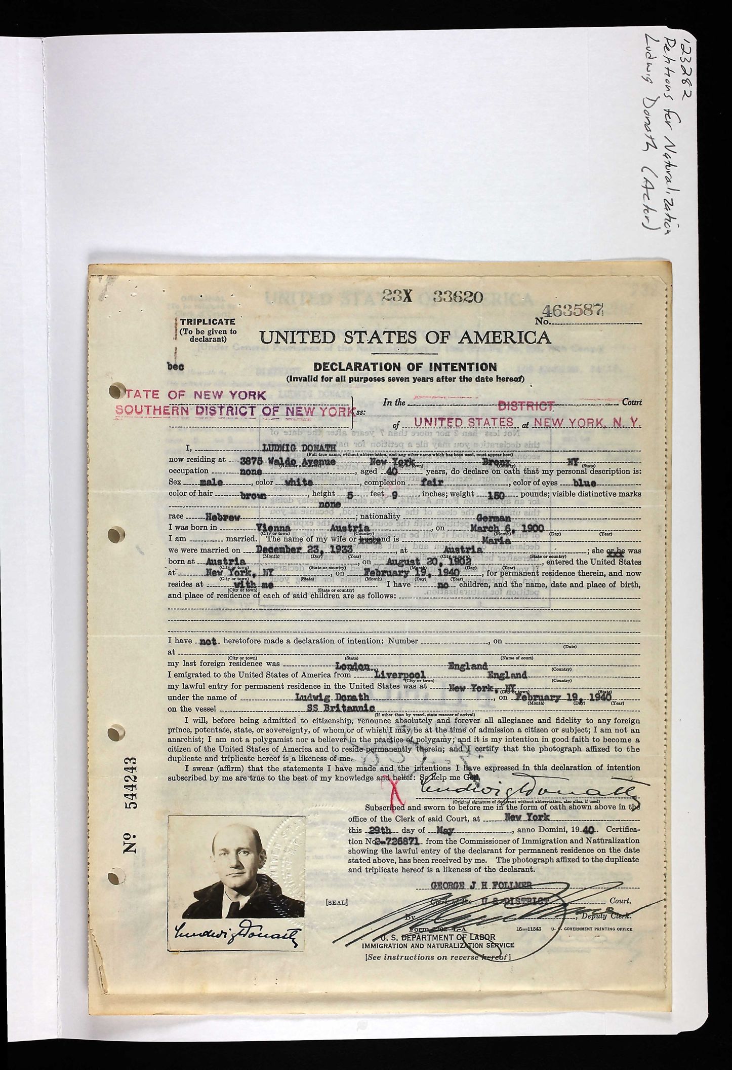 Figure 24a. Ludwig Donath’s 1940 Naturalization Record