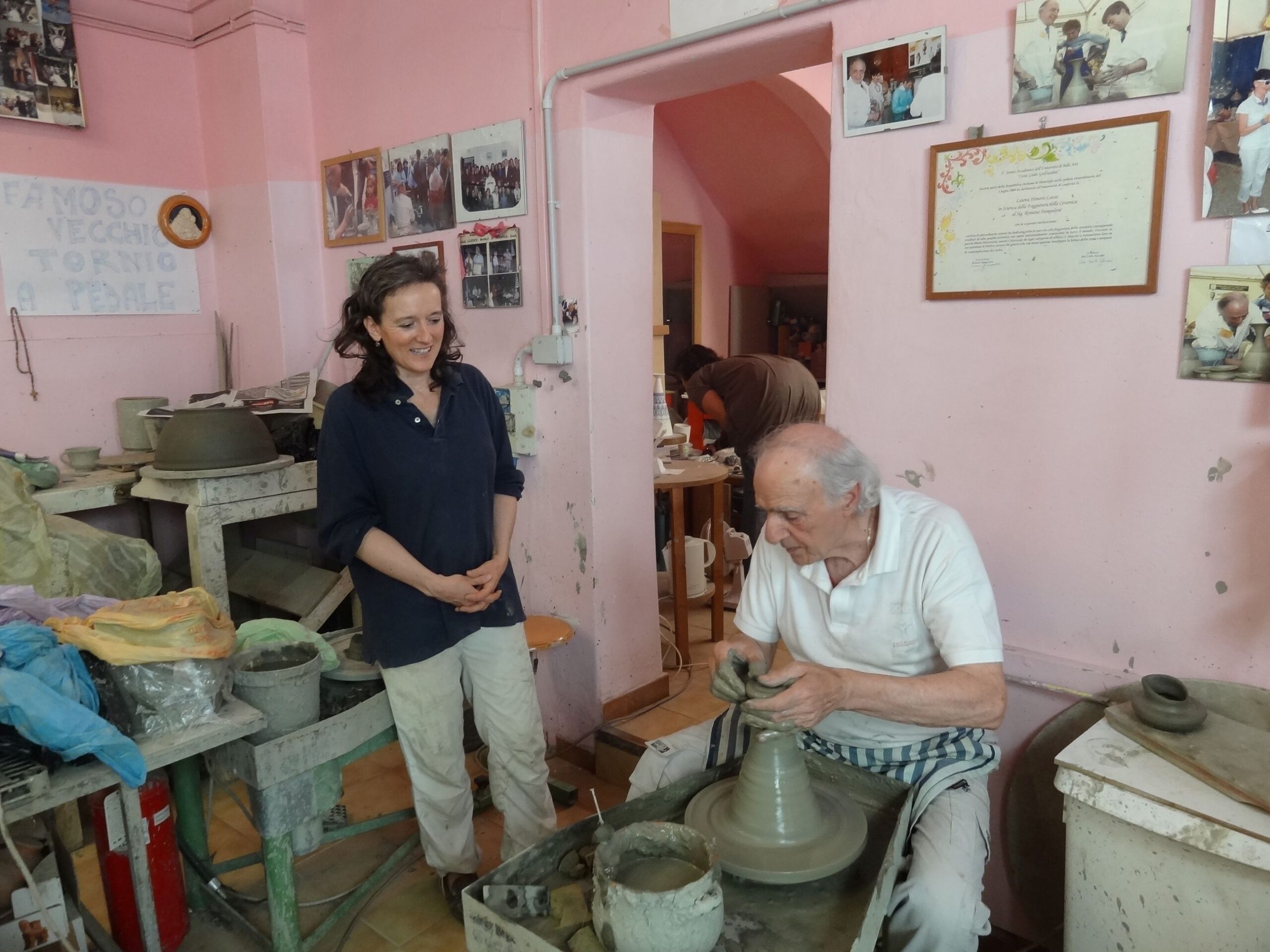 Figure 4. In 2014, our friend Giuditta Melli standing alongside Romano, the master potter, in the pottery shop where she then worked